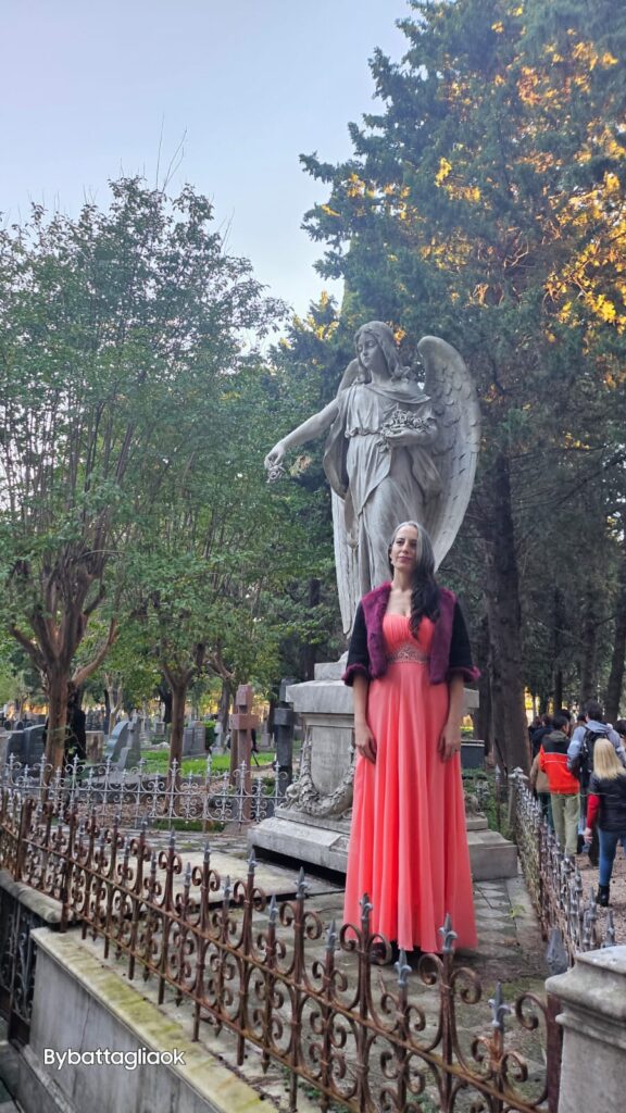 Como si fueran espectros evocando a los personajes de Hamlet, los artistas emergieron entre las lápidas, transportando al público a un mundo de belleza y emoción. El tenor Santiago Sirur, acompañado por el celista Nicolás Strings, inauguró la velada con una interpretación conmovedora de «Panis Angelicus» de César Franck. A ellos se unió la soprano Rocío Giordano, quien frente a un majestuoso angel victorioso, entonó el «Ave María» de Schubert, creando un momento de sublime belleza que resonó en lo más profundo de los presentes.