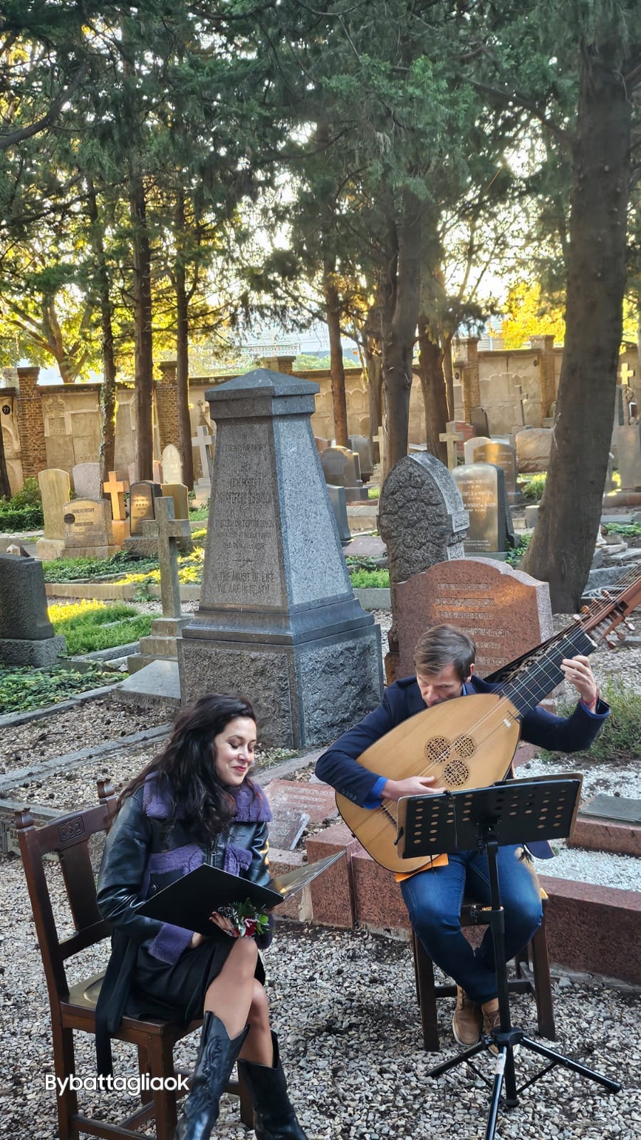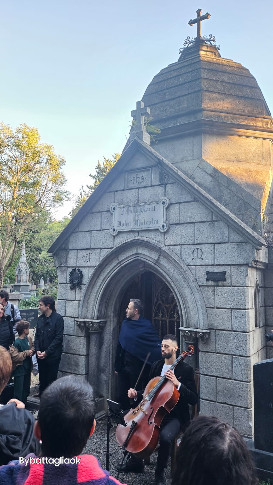 La experiencia se trasladó luego a la capilla, donde la reverencia del lugar transformó cada nota en una plegaria para los difuntos. La acústica de la capilla permitió que las melodías se elevaran y llenaran el aire, creando un efecto casi celestial que envolvía a los espectadores en un aura de tranquilidad y contemplación. Cada interpretación, cada nota, se erigió como un tributo a las vidas honradas en el cementerio, entrelazando la música con la espiritualidad del lugar.
