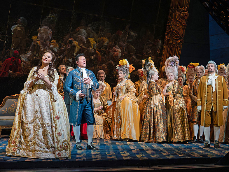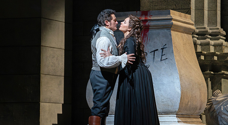 Mas el verismo vive del tenor, y Beczala —casi sexagenario para fin de año— fue un Chénier de refinada insolencia: presencia vocal y física que irradia, pese a un arranque seco que se evaporó en el «Improvviso» del acto I. «Colpito qui m’avete… Un dì all’azzurro spazio» germinó lírico para erigirse en clímax declamatorio, un desafío lanzado con la gracia de quien sabe que el público ya es suyo. «Come un bel dì di maggio» desveló su bel canto pulido: anillo argénteo y dorado calorío, forjados en liras más suaves, ahora teñidos de heroísmo sin bramidos vulgares. Musical hasta la médula, nunca gritando como un tenor de pacotilla ni escatimando potencia, Beczala posa escénicamente con la apostura de un dandy guillotinado. Bendita sea la transmisión HD del que uno puede ver en directo: al menos, el mundo podrá fingir que aún hay tenores que importan (la tienen completa para disfrutra en este critica).