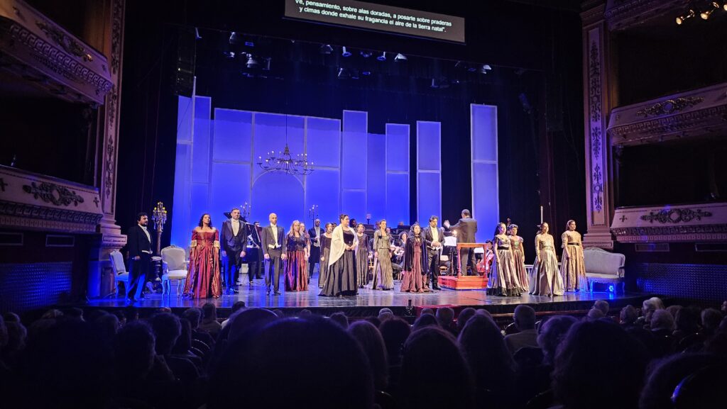 El maestro Hernán Sánchez Arteaga, al frente de una pequeña pero efectiva orquesta, logró extraer lo mejor de cada número. Mientras tanto, el coro, dirigido por Pablo Manzanelli, acompañó con solvencia «Va, pensiero» de Nabucco y el «Inneggiamo» de Cavalleria Rusticana. Los destacados solistas regresaron al escenario del Teatro Avenida para dar testimonio de una carrera que, en muchos casos, comenzó en esta misma compañía.