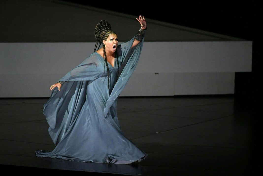 Como Amneris, la nueva destacada del MET, la ROH, Opera de Viena y del Bolshoi estoy hablando de EKATERINA SEMENCHUK la cual presentó destellos vocales que dieron carácter al rol de gran impacto. Estamos hablando de cantantes rusas, por tanto su estudio vocal es diferente a la escuela italiana , de que no posea voces caprinas de ahi que sea voces profunda,claras y amables, su voz es de una seguridad absoluta y su fraseo no es para desmerecer en ningún momento, uds podrán decir no se le comprenden las palabras, pues mis amigos, a cuantas celebridades no se les comprendía y llegaron a ser número uno en un pasado cercano y no porque sea de origen ruso ,no seamos obsecuentes o carente de conocimiento musical para decir mal fraseo, pues los invito a tratar de ver esta versión y se darán cuenta de lo que les digo, todo se comprende e impacta, En un mini comentario hablaba de lo posesa en la Escena del Juicio del IV acto de parte de esta magistral mezzo, justamente logra la esencia de la ópera, el transmitir con voz y escena ,en este caso se ve a la mujer perdedora con culpa por mandar a la muerte a su amado como asimismo sentirse sesgada ante una sociedad machista, se observó como su temperamento que la caracteriza fue creciendo , uno ya la había visto realizando Azucena de Il Trovatore (ROH 2016) como en su Margarita de La condenación de Faust (Bolshoi 2017), pues como en su otrora celebrity anteriormente mencionada , supo trabajar en conjunto y sobre todo saber lucirse en el minimalismo absoluto escénica, sus miradas y sus manos marcaban su jerarquía.