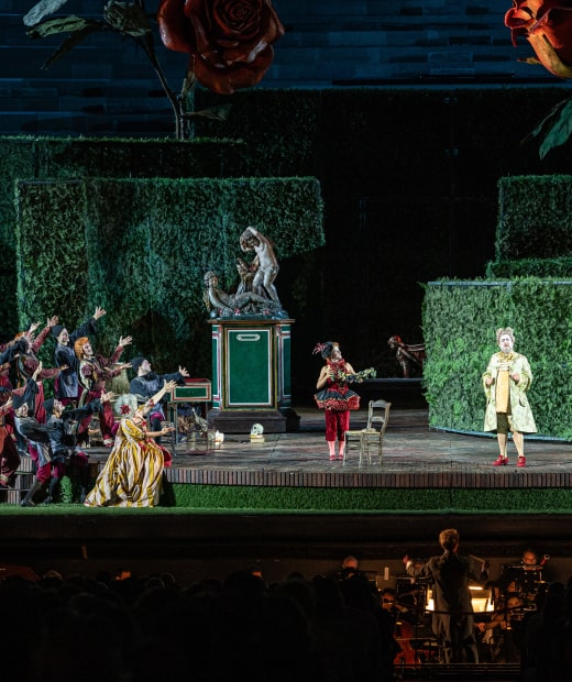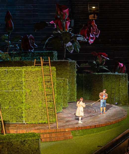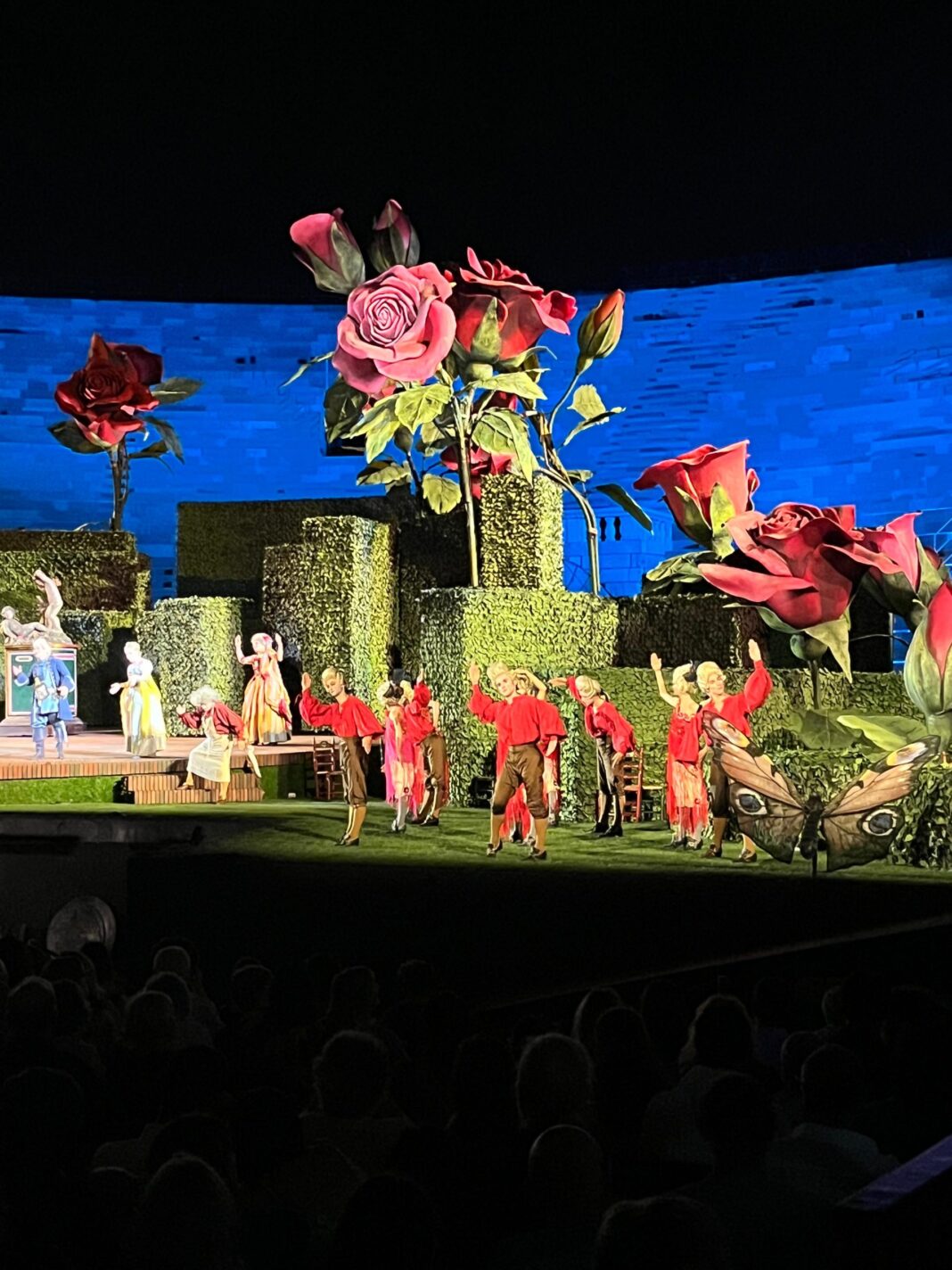En la icónica Arena di Verona, con la luna como testigo y las expectativas tan altas como los rosales de plástico de la escenografía, se levantó el telón de la eterna producción de Hugo de Ana, que lleva desde 2007 adornando la ópera como un florero olvidado en el salón. Y cuando digo «florero», no es una metáfora delicada: ¡literalmente! Un gigantesco jardín de rosas, que ya parecen parte del patrimonio veronés, domina el escenario, estático y grandilocuente, como si Rossini hubiera escrito un tratado botánico en lugar de una ópera bufonesca.