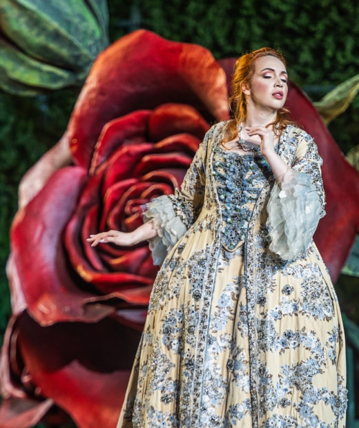 La batuta de George Petrou, precisa y elegante, logró mantener la frescura de la música de Rossini, incluso cuando la escenografía se resistía a moverse. Fue un contraste cómico entre el dinamismo de los personajes y la quietud abrumadora de ese jardín barroco que ya parece salido de un sueño de Almodóvar. Quizás un drama surrealista con rosas gigantes y personajes atrapados en sus propios decorados.
