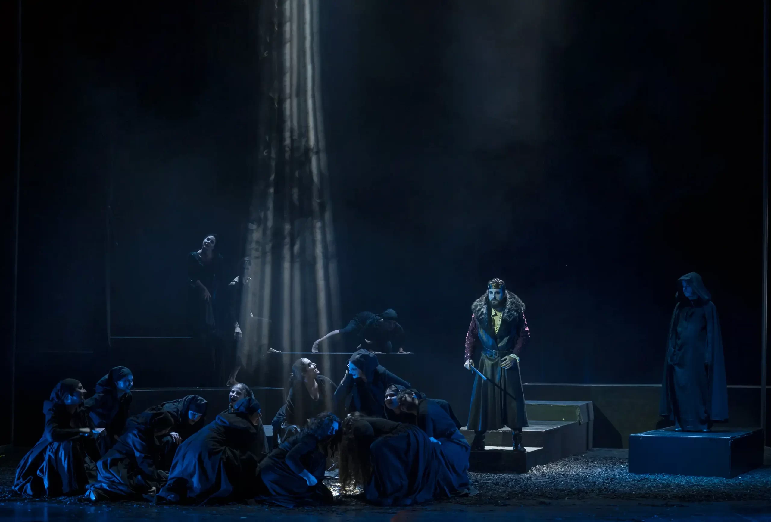 Mario De Salvo como Banquo resultó otro de los pilares de la noche: nobleza vocal, timbre rotundo y fraseo impecable. Su “Come dal ciel precipita” fue uno de los grandes momentos del espectáculo, mostrando legato amplio y hondura emocional. Banquo emergió como contrapeso moral frente a Macbeth, con dignidad y fatalismo en cada frase.