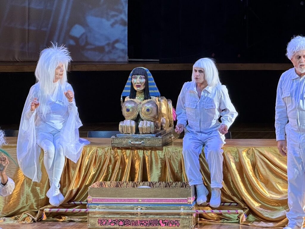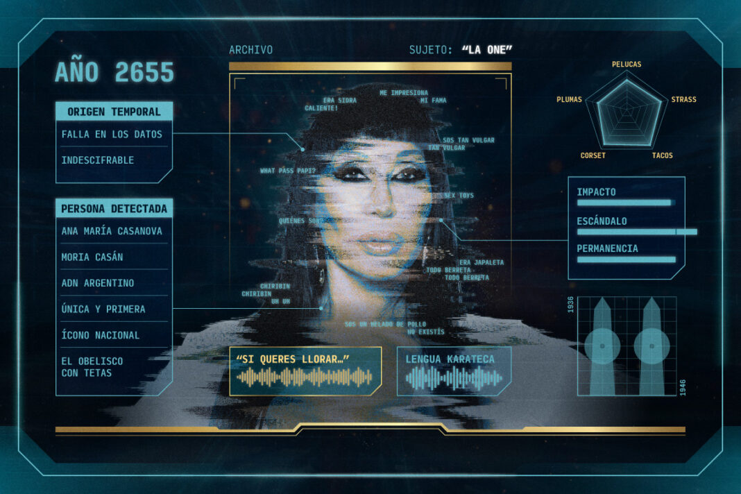La premisa —un Buenos Aires del año 2655 convertido en epicentro de una civilización postapocalíptica donde arqueólogos desentierran a una figura enigmática— tiene, en potencia, una veta fascinante. La idea de reconstruir a Moria Casán como mito fragmentado —vedette, política, prisionera, ícono— abre un juego teatral riquísimo entre memoria, distorsión y cultura pop. Pero lo que podría ser una operación inteligente de relectura termina cayendo en una acumulación de ocurrencias.