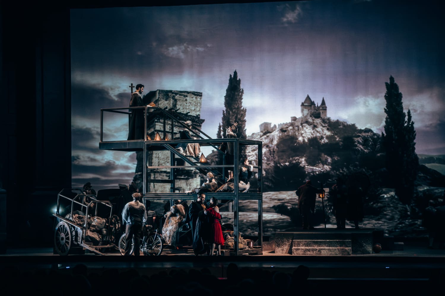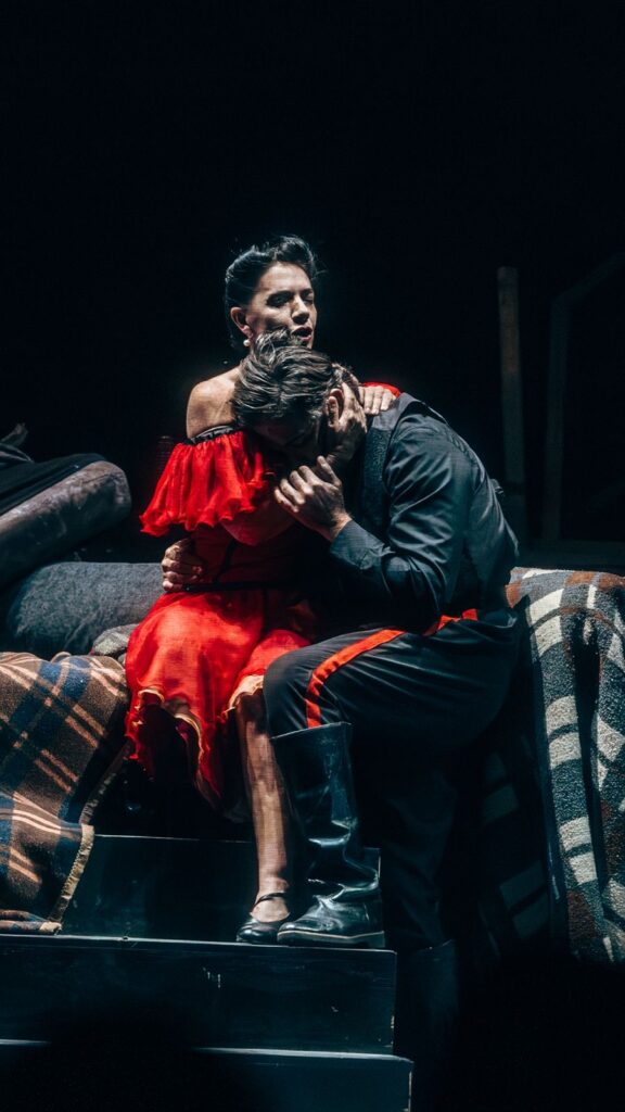 En lo vocal, Verónica Cangemi construyó una Nedda de un relieve excepcional, poderosa en su entrega y de una urgencia emocional pocas veces vista. Su administración del fiato realza la musicalidad del personaje, y en los pasajes más expuestos, su dicción y su entrega emocional permiten que el rol encuentre una expresividad que equilibra fuerza y vulnerabilidad. Dentro del concepto de Zanetti, su Nedda se convierte en una auténtica Anna Magnani, un retrato que evoca el cine de Rossellini y que incluso incluye un guiño estético directo a Pasaron las grullas: un dramático y violento movimiento del cortinado blanco, que vuela desde una de las puertas de ingreso a escena, símbolo del engaño, la mentira y la devastación íntima del personaje.