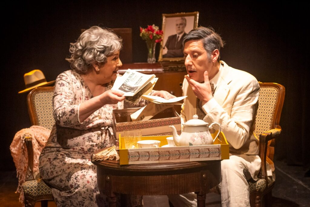 Ese choque de temperamentos le otorga al relato un espesor político que enriquece la mirada sobre la figura de Pacini, no solo como artista y esposa, sino como mujer que supo plantarse en circunstancias adversas. Completan la escena Cali Mallo, en el rol de Adams —sobrino de Regina—, quien se convierte en el partenaire de la longeva Dama al traer a escena los recuerdos de una vida tan atrapante como distante.