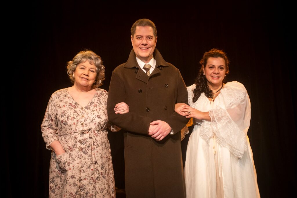 A su lado, Alberto Jáuregui Lorda aporta solidez al rol de Carlos de Alvear, el hermano, presencia que marca el peso de la tradición familiar. La galería femenina suma contrastes poderosos: Verónica Díaz Benavente, como María del Carmen de Alvear, se luce con chispa y agudeza, ofreciendo un contrapunto vibrante a la relación central. María Luján Mirabelli, en el papel de Felicitas Quintero, compone una madre abnegada que refuerza el costado más humano de la protagonista. Adriana Poch, como María Unzué de Alvear, encarna con precisión la oposición social que debió enfrentar Regina, mientras que Loly Sánchez ofrece la frescura de una joven Regina, evocando los inicios de aquella voz que conquistó Europa.